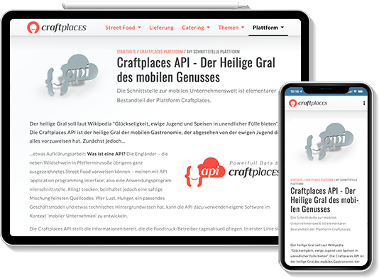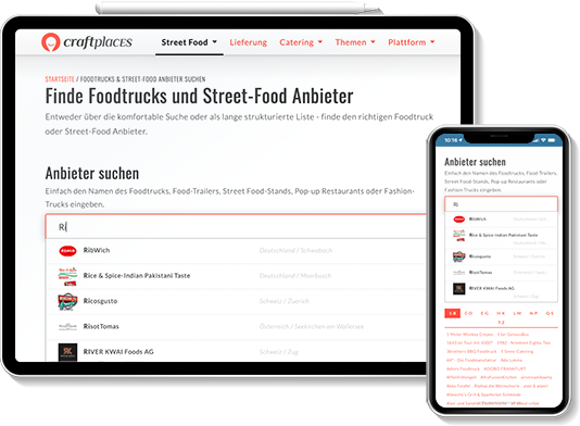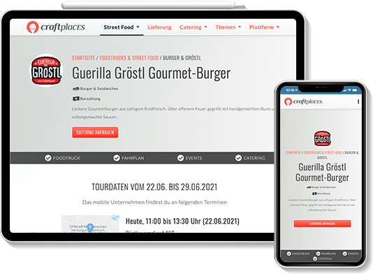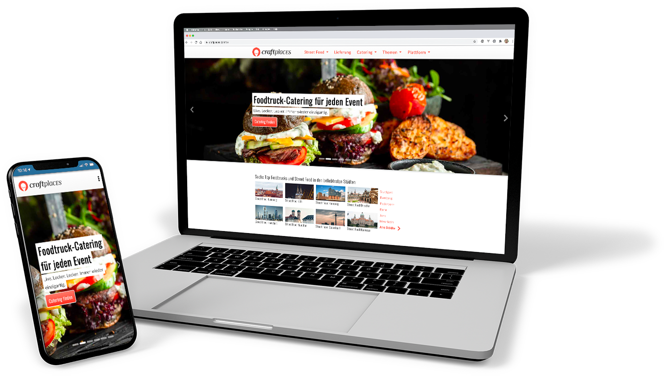 To get started with the international food truck platform Craftplaces the website was the first step towards the platform. It combines all information about business opportunities in the food truck scene and combines it with market data and statistics. Additional street food scene news and guide how to start your own business complete the offer.